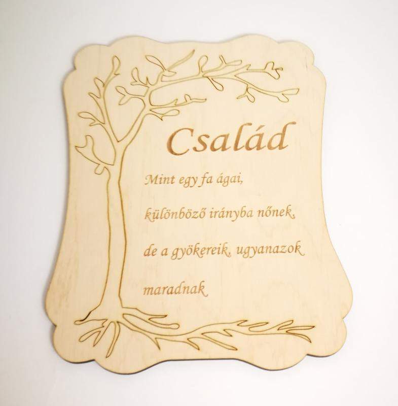 Ez a gravírozott fa tábla nemcsak egy dekoráció, hanem egy emlékeztető is arra, hogy a család mindig a legfontosabb.