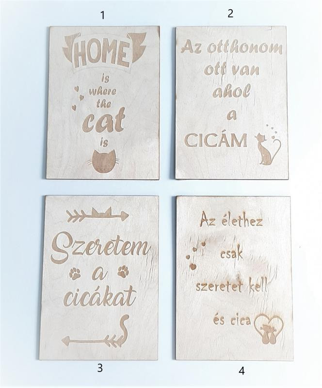 Gravírozott Macskás Fa Tábla - Macskarajongóknak