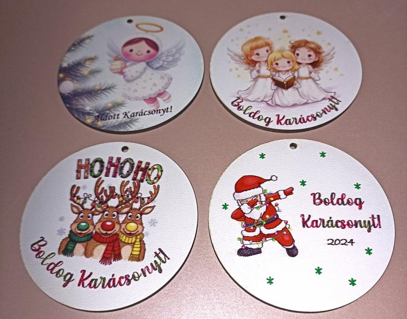 8 cm átmérőjű UV nyomtatott ünnepi függő.